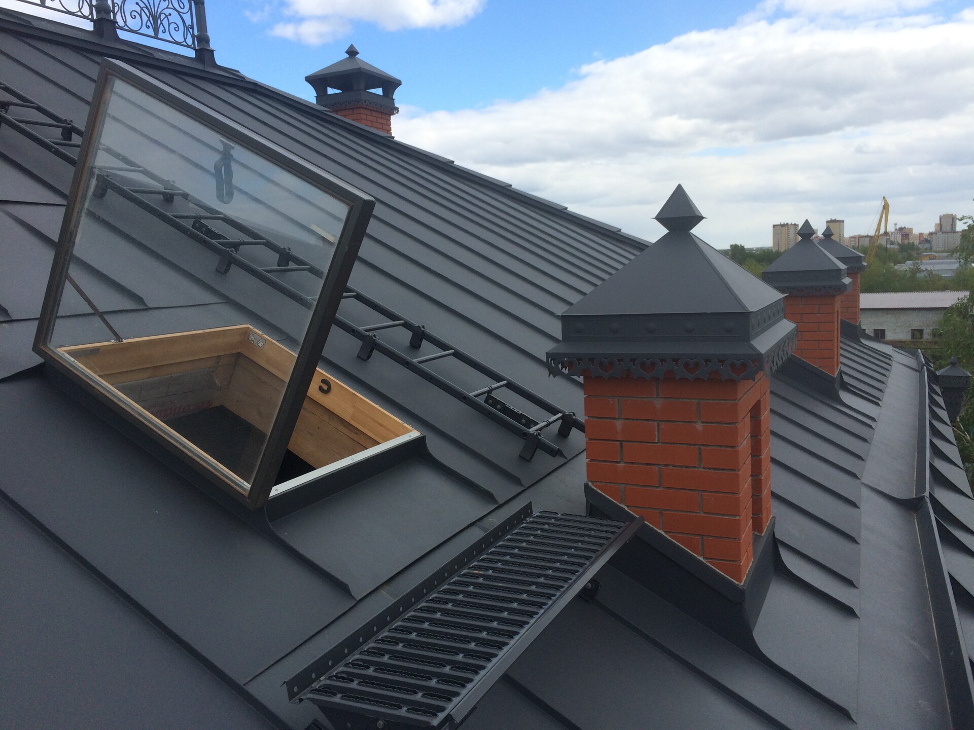 элементы безопасности кровли, кляммера для фальцевой кровли. Производим монтаж кровли, фасада, забора в технике двойного стоячего фальца. Нами разработаны и внедрены обходы труб кирпичных с гарантией 15 лет.